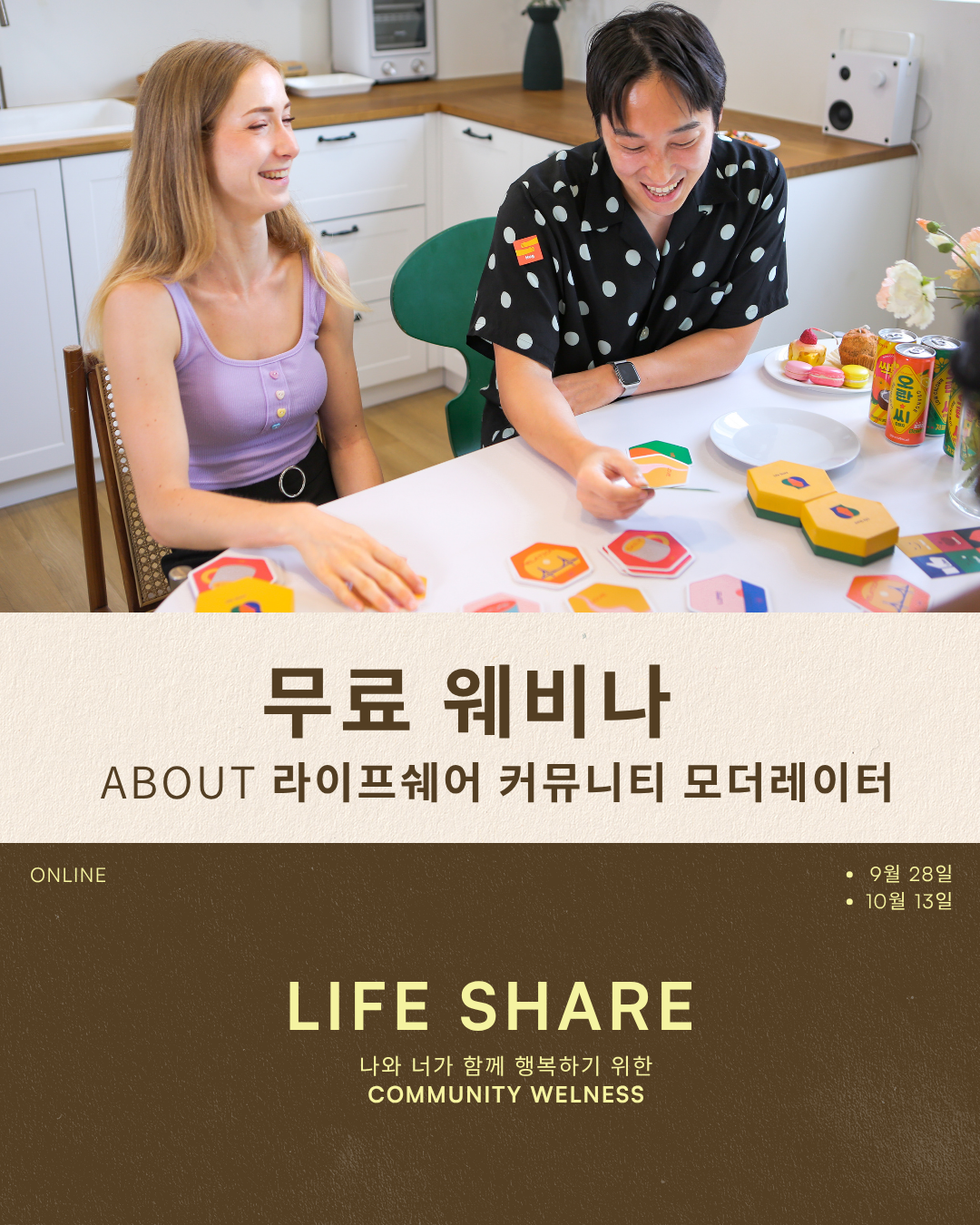 서로의 이야기를 진솔하게 나누고, 다양한 삶의 조각을 맞추는 사이 나의 현재와 미래의 방향을 점검해요. 라이프쉐어 대화 리추얼의 정수를 맛보실 수 있는 기회가 될거에요.