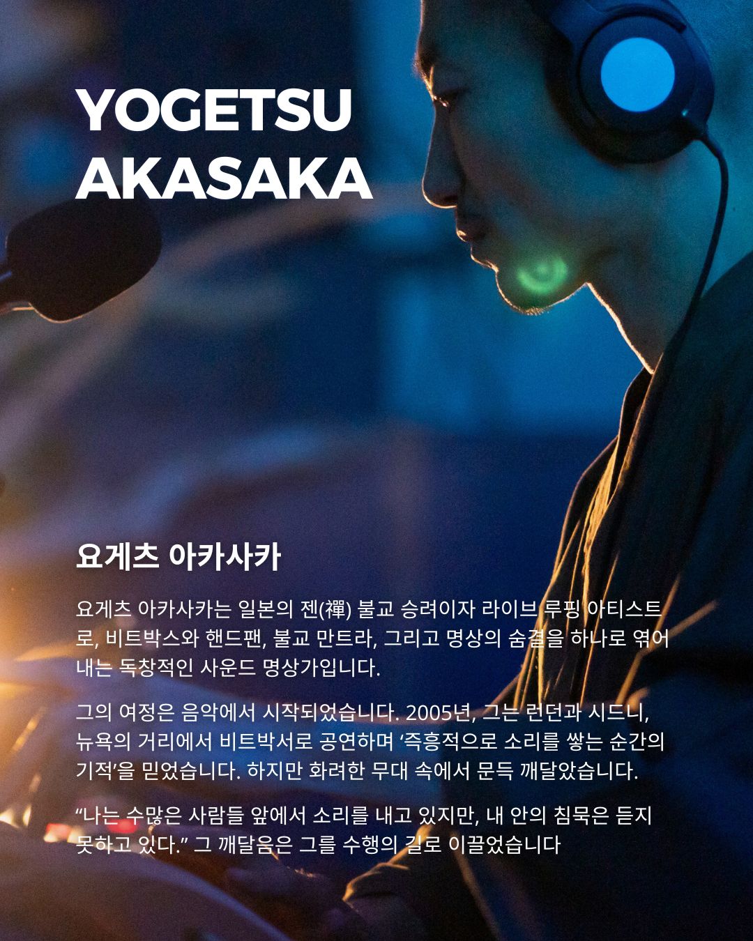일본 젠 승려이자 보이스 루퍼, 요게츠 아카사카(Yogetsu Akasaka)를 초대합니다.